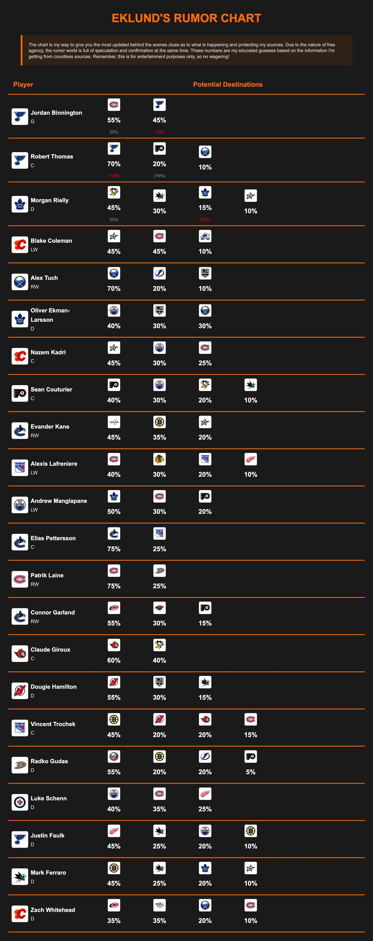 THURSDAY NHL FREE RUMOUR CHART UPDATE