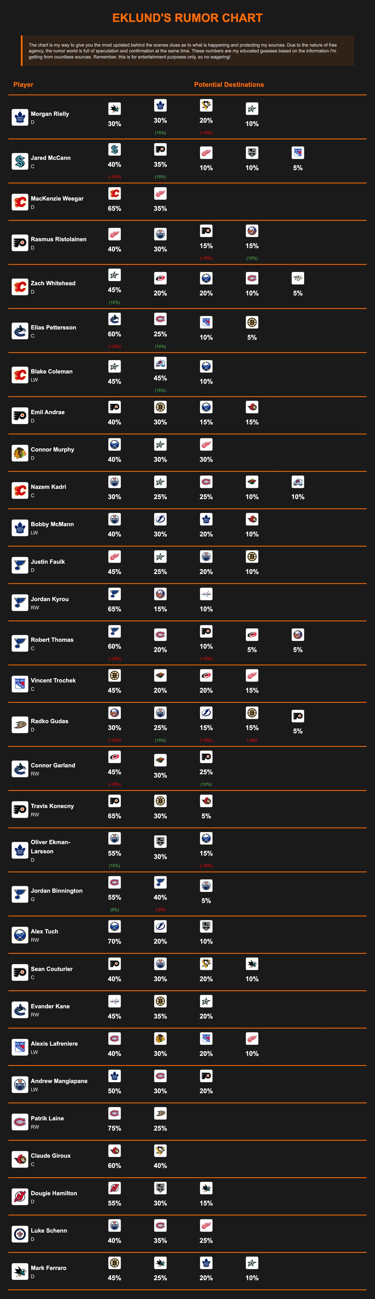 Eklund's NHL Trade Rumor Chart