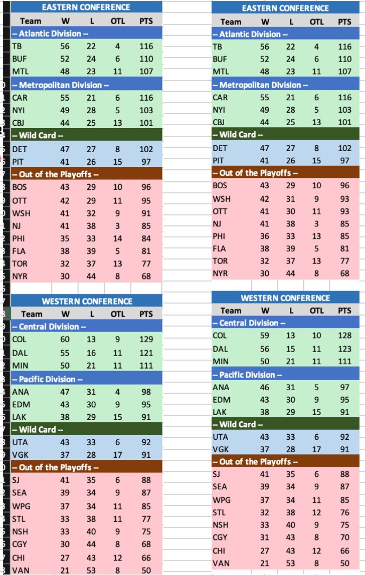 THE HOCKEYBUZZTRON 3000, Projected Standings.