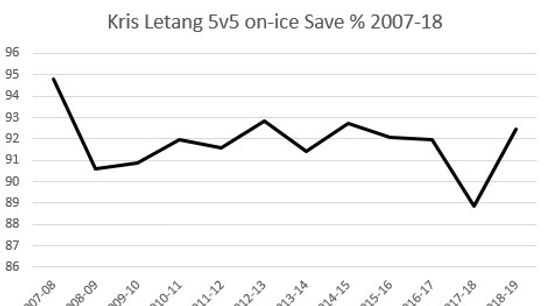 I don’t subscribe to the theory that Kris Letang is having a bounce back season. He was really good last year, too. Just like he has been every year except the stroke year. There’s an obvious culprit for the perception of Letang bouncing back. His goalies stopped sucking when he was on the ice.