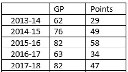 He’s had two clunker years mixed in out of the seven. I like the odds of him being able to contribute on a line with Crosby or Malkin. I like the fact when he isn’t getting points he is still a player with value because of his possession and expected goals contributions.