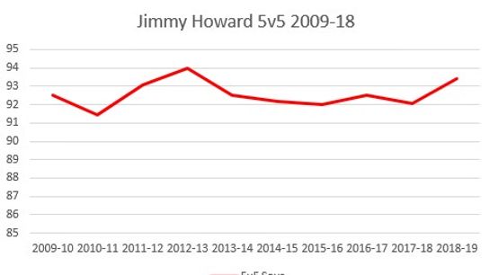 Jimmy Howard is probably a better goalie than he has been given credit for. His 5v5 save percentage has been consistently league average or above during his career.