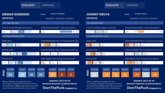 Option one is the better option. It doesn't involve a buyout and every player is off the books for next year. Both options involve picking up a less than stellar defenseman. Johnny Oduya ranks poor in both possession and ability to generate offense. Wideman is even worse than Oduya on the possession front but he is able to generate offense at a top pairing rate.