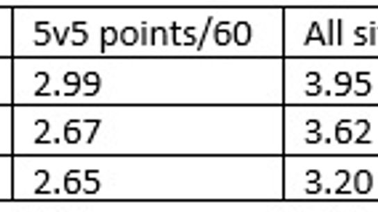 You can see that Schultz has done a lot of damage throughout the season. While he may not have those skyscrapers in the most recent time frame he also isn’t getting buried with Letang out either which is nice.