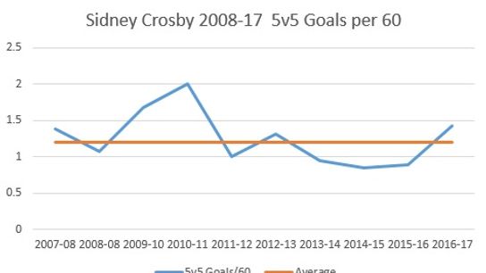This is the first time in a while that he has found himself scoring goals at even-strength above his career average. Also, his 2.66 goals per 60 at 5v4 is a personal best during this timeframe. When you combine Crosby’s 5v5 and 5v4 scoring prowess this year the result is a Rocket Richard worthy season.