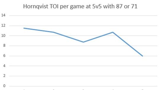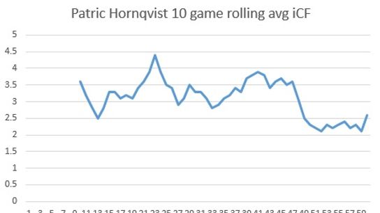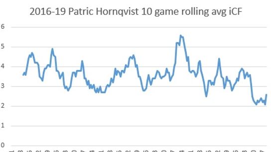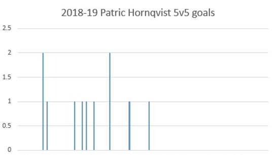 Hornqvist started the 2018-19 season strong at 5v5. Halfway through the year he was at 11 5v5 goals which was only three short of the 14 he scored all of last year. He was alleviating my initial concerns for the early portion of this season. Since then… Yikes.