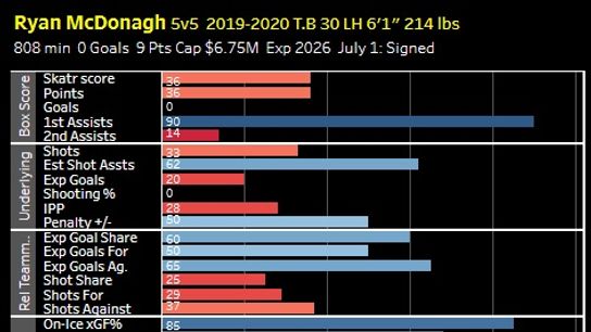 He is a below replacement level player and he is signed for four more years at 4.5M. Bobby Ryan only has two years left on his deal and why he wasn’t the choice here. Colin White isn’t on a great deal, but at least he showed a pulse in 2018-19. The Zaitsev thing is made worse by the fact the Senators will probably shoe horn him in a role way above what he is capable of. Tampa Bay Lightning – Ryan McDonagh