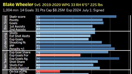 I love Blake Wheeler. He has been a monster for a long time and the only reason he’s here is because of age and term. He will be 34 next year and he will have four more years making 8.25M. Good news is he hasn’t dipped in his production