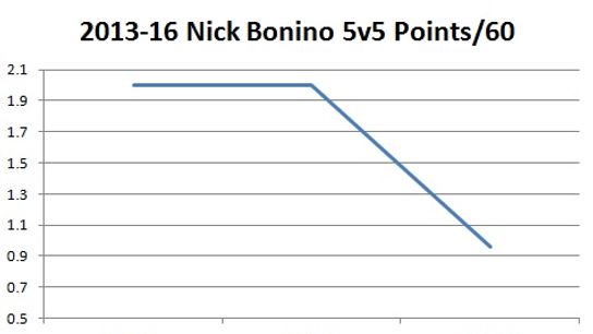 Neither player is great defensively but Bonino has shown the ability to generate a decent amount of offense at even-strength which was supposed to be one of the bonuses of moving on from Sutter. So far this year that has not been the case.