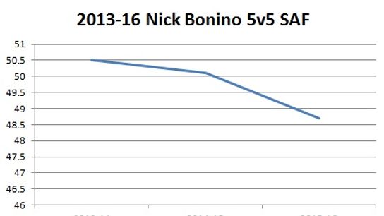 Nick Bonino has been Brandon Sutter's cheaper replacement this year and when you compare Bonino's 2015-16 underlying numbers to what Sutter gave Pittsburgh in his tenure with the team they are very similar (read as not very good).