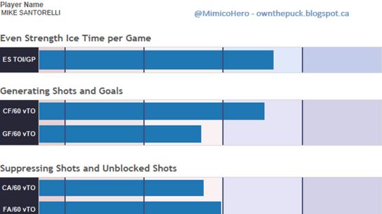 Many people’s perception is probably that Mike Santorelli doesn’t deserve to be in the same conversation as Brandon Sutter, but his numbers say otherwise. Brandon Sutter has slightly higher Goals per 60 and shots per 60 at even-strength (not by much) but everything else is better on Santorelli’s end. You won’t spend 3.3M but you’ll get similar or better quality of play at the position. Santorelli isn’t a high end addition, but he certainly isn’t a downgrade on Sutter, thus making him an option.