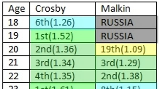 Here is how Sidney Crosby and Evgeni Malkin have been tracking