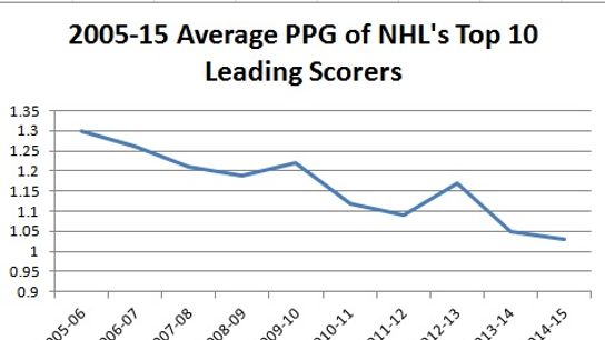 This is a polite reminder that ~60 points is top line level production these days. If a player can have a points per game average of around 0.73 that should still be considered very good. Offense has been in decline for about a decade now and should alter perception on what is top level production and what isn't