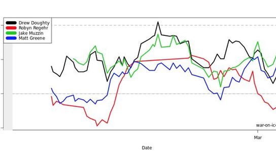 Here is what has happened to Doughty's on-ice corsi differential over the course of the season. Note that the first time we saw the pair together was March 1st against the Winnipeg Jets.