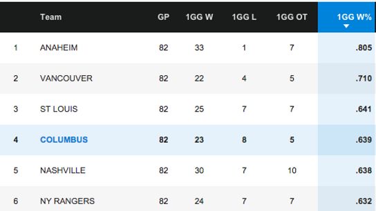 In fact, if you look at the top 15 teams this year in 1GG win percentages they are almost all playoff teams.