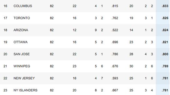 As you can see, only The Columbus Blue Jackets and the Dallas Stars were non playoff contenders. Anaheim was absolutely ridiculous this year in one-goal games, and have continued that trend into the playoffs (Much to the dismay of my 'Winnipeg in 7' prediction).