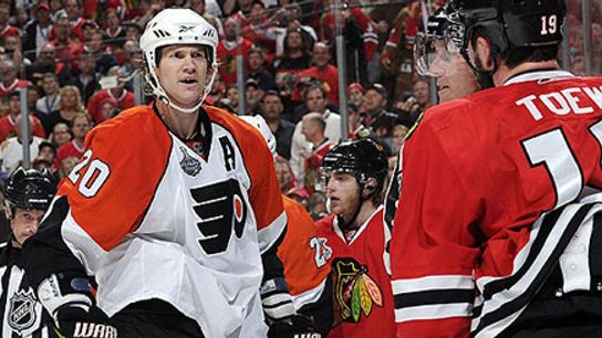 This was the beginning of the end for Pronger’s NHL career. The next year injuries would let him only play 50 games in that season. Due to the performance of the Flyers in that 2011 season, the team made changes to their leadership core trading away Mike Richards and Jeff Carter. They felt that Chris Pronger was born to be a Flyer and deserved to be captain. The problem was during the first month of his captaincy, Pronger was hit by an errant stick from Mikhail Grabovski of the Toronto Maple Leafs, leaving him with a concussion that would end his season, and his career, after 13 games.