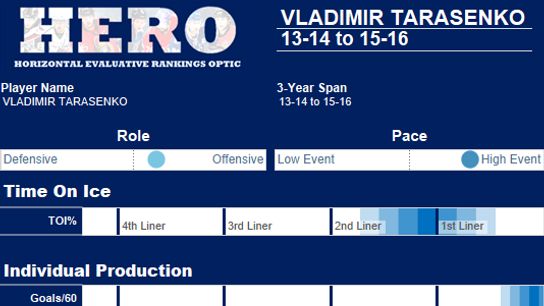 In the past two years in all situations Alex Ovechkin leads the NHL with a goals per 60 of 1.86. Tarasenko is second overall at 1.69. Only Tyler Seguin (3.69), Patrick Kane (3.48), and Jamie Benn (3.40) have a better overall points/60 than Tarasenko's 3.22.