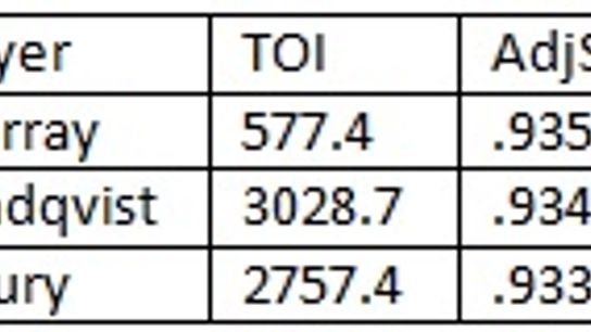 Here are the 5v5 adjusted save percentages for the three most likely goalies to see action this series