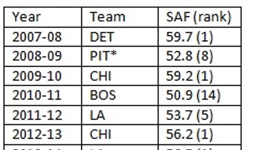 As you can see possession is the main driver of playoff success. While you can ride great save percentages or shooting percentages in a short sample IE: seven game playoff series it seems like possession is the way to go. Half of the champions were the best possession teams in the league. Six of the eight champions were in the top five. Tough to dispute that.