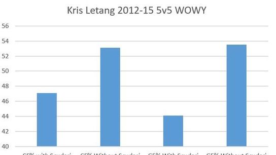 Since Rob Scuderi returned to the Penguins Letang has played 269 5v5 minutes with him. The results: