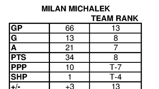 Michalek has taken a lot of grief for his lack of value in terms of production/cost, but if you project his second half over an entire (healthy) season you will still conservatively get a 60+ point season with around 20-25 goals. Granted, how much prime ice time he will continue to get is a question mark, so those numbers are most certainly inflated, but he has shown that given the opportunity he can still contribute offensively. Given the other things he brings as well, that actually isn't all that bad for $4M this day in age.