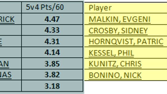 Evgeni Malkin is awesome. Crosby is really good. However, the Sharks as a whole have more guys in that upper 3's to 4's range.