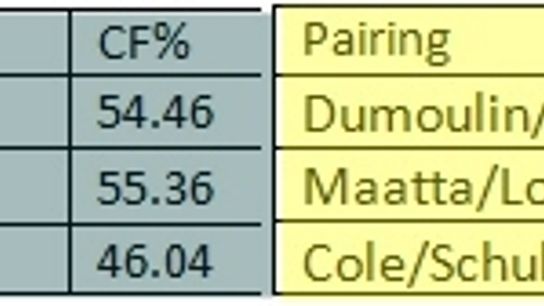 The Middle pairing is the biggest difference here. The Pittsburgh combo of Lovejoy and Maatta hasn't seen a ton of time together because for most of the playoffs Trevor Daley was in the lineup . When Daley was in the lineup he and Lovejoy combined for a CF% of 65.33%. That is a lot to try and replace this late in the year.