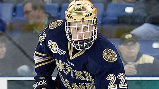 Lucia is going to be a 50/50 to turn professional in 2015 in my mind, it certainly helps that he has carried over his puck skills and scorer mentality to being focused on by opponents of Notre Dame this season. Lucia is a true power forward prospect which at minimum means that competing against adults in the AHL and rugged defensemen in the NHL wont be a huge shock to his system next year.