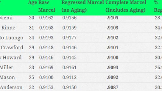 I'm not averse to extending Anderson but I get somewhat nervous about how a deal for this kind of player will likely shake out. Anderson, I would assume, is looking for a spot where he can get starter or split-starter time. The projections, as is the case for most goalies his age (34 next May), are not kind long-term. Let's remember what Hockey Marcels say about him through 2017: