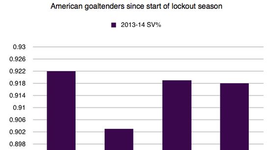 1. Ryan Miller is a freak. Sometimes it's easier for a guy to post an impressive save percentage when facing a lot of rubber, but the Buffalo Sabres are flat out bad and Miller has managed to post all-star caliber numbers anyways. He deserves to be USA's No. 1 goaltender.