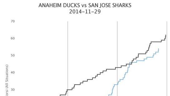 The Ducks coming back was a healthy blend of San Jose taking their foot off of the gas and the referees deciding to take over the game in an attempt to avoid a ruckus like the last time these two teams met. The Ducks turned up the heat so high, thanks to the barrage of penalties, that they actually caught up and passed the Sharks in shot attempts (all situations) early in the third.