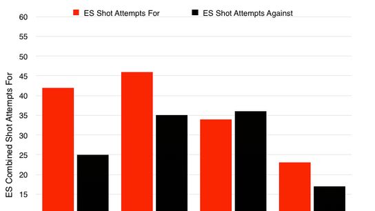 I went through the game logs and added the even strength shot attempt totals, and the results to date have been pretty encouraging.