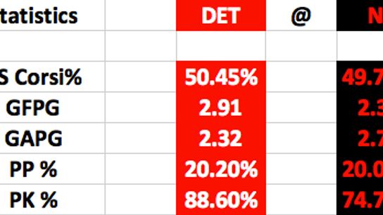 Match-up - Detroit Red Wings (12-5-5) @ New Jersey Devils (9-10-3) Road/Home records - 4-3-3 -------------- 3-3-2 TV - FS-Detroit, MSG+ Puck drop - 7:00 p.m. ET Season series - 1-0 Detroit Last 10 - Detroit: 6-2-2 ------- New Jersey: 3-6-1 Projected starting goalies - Peter Mrazek vs Cory Schneider