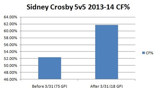 I realize that using an 18 game sample size is not equal to the prior 75 game game sample size, but now knowing that Crosby did indeed suffer an injury it is hard to argue against the drastic changes in results.