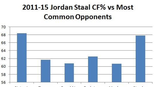 Jordan Staal is one of the best shutdown centers in the league. He is able to drive possession against the league's best players. Here is what he has done the past four seasons against the players he has played the most against