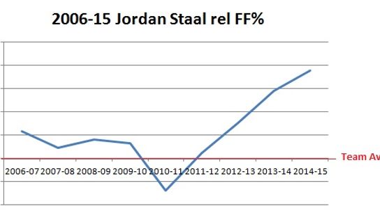 When compared with his teammates Jordan Staal is consistently one of the better drivers of possession on his team