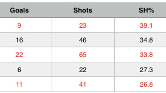 I charted the Devils' top-5 percentage shooters and their career numbers to see just that.
