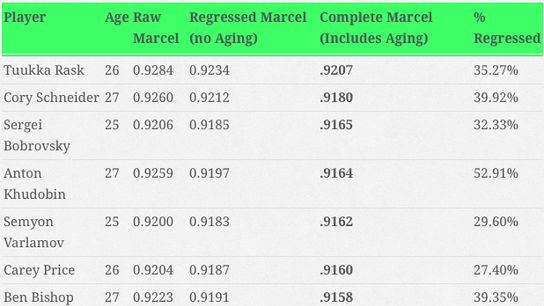 Long story short, HockeyGraphs uses past data, but puts higher value in more recent numbers to project how goaltenders will perform in the future.