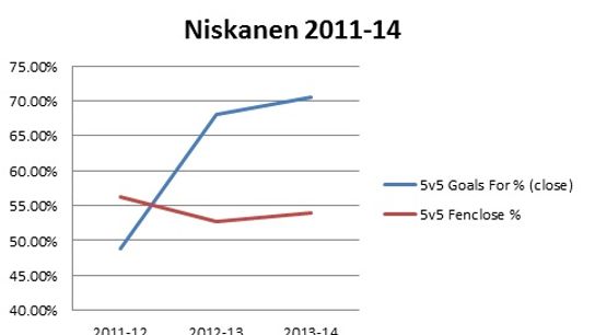 These numbers are tremendous. Niskanen drives possession when he is on the ice and it has led directly to an insane amount of even strength goals being scored in close games. This is top notch stuff.