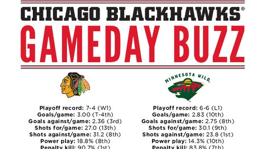 Round 2 –Wild vs. Blackhawks –(All times CT) Game 1 –CHI 5, MIN 2 Game 2 –CHI 4, MIN 1 Game 3 –MIN 4, CHI 0 Game 4 –MIN 4, CHI 2 Game 5 –CHI 2, MIN 1 Game 6 (if necessary) –Tue., 5/13, at Minnesota, TBA Game 7 (if necessary) –Thurs., 5/15, at Chicago, TBA
