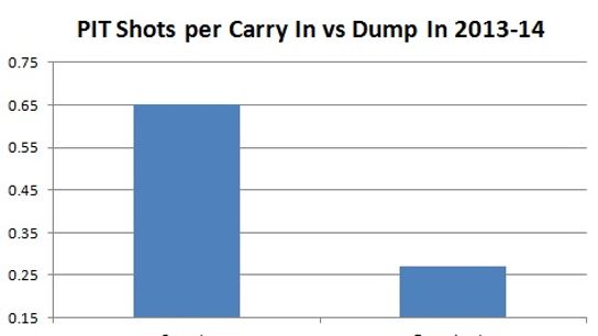 Here is the difference between carrying the puck in with possession on entry versus dumping the puck in