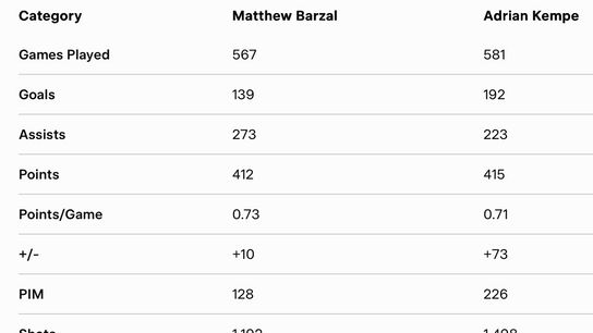 I will be the first to admit I have an east coast bias, but when comparing these two statistically I would have given a definite edge to Barzal. I love Kempe, but I have always seen Barzal, when healthy, as a bigger star. Lets see some comparisons…