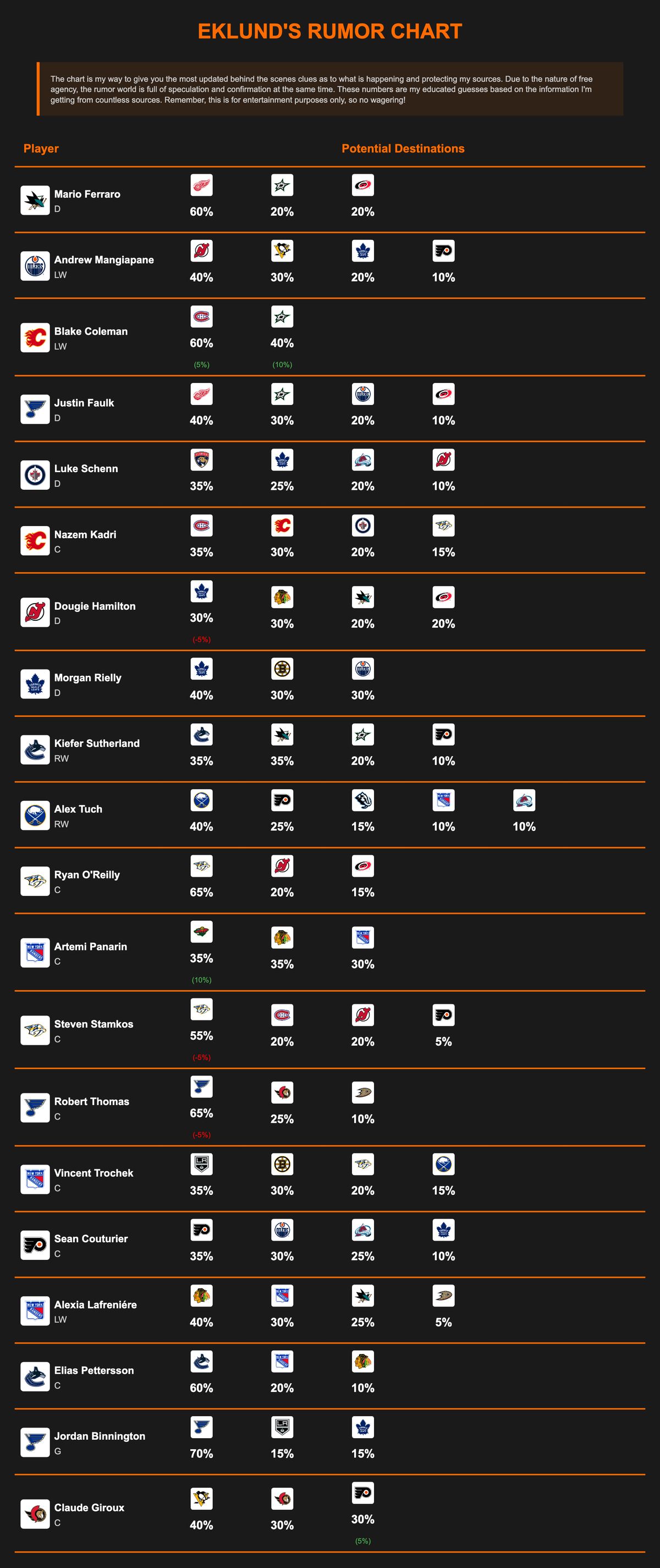 Dallas makes a lot of sense here. The Stars are in full win-now mode and have been quietly looking to add another veteran presence to a deep but occasionally inconsistent blue line. Faulk wouldn’t need to be “the guy”.... just a reliable, hard-minute defender who can support a long playoff run.
