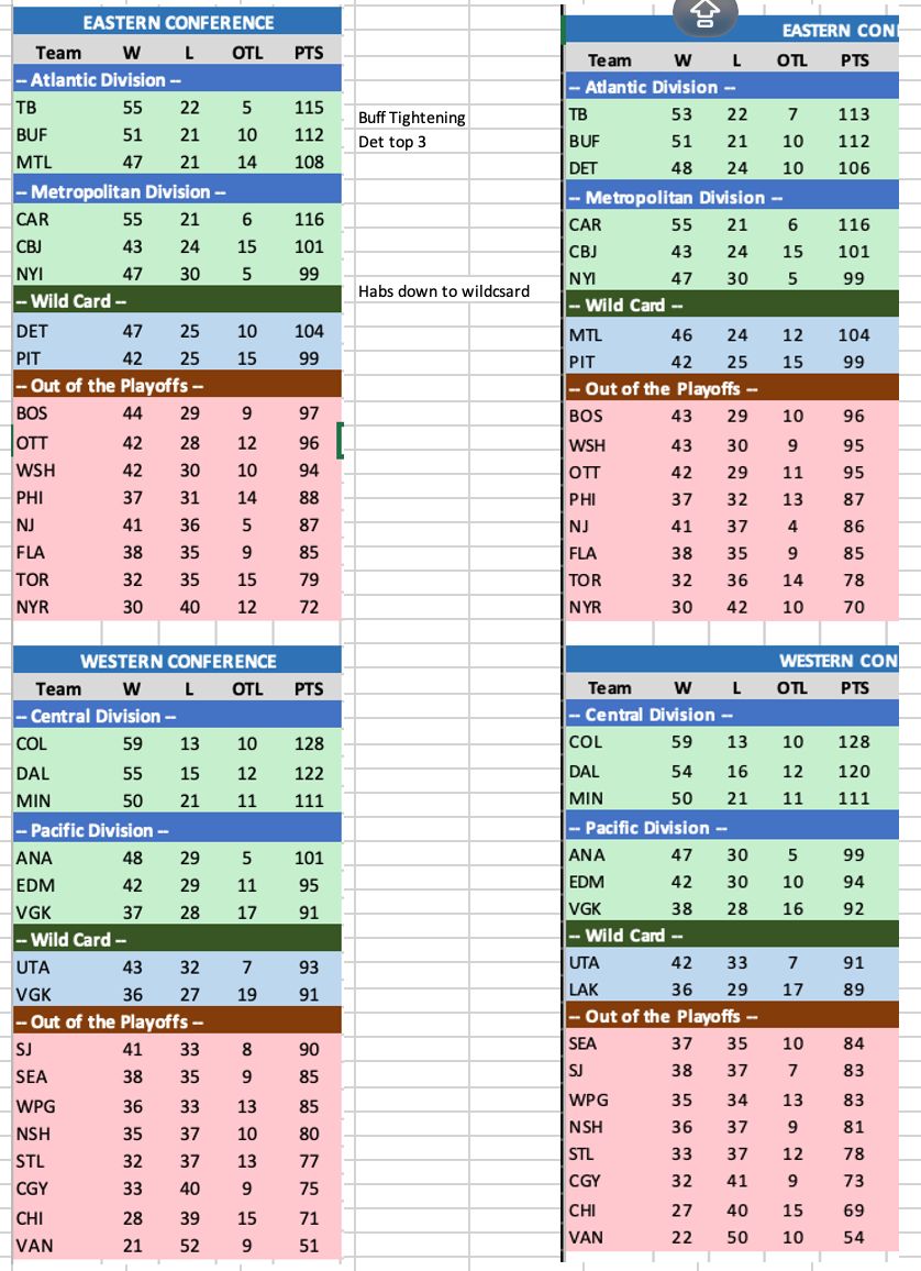 THE HOCKEYBUZZTRON 3000, Projected Standings.
