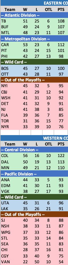 NEW PLAYOFF PROJECTED FINAL STANDINGS