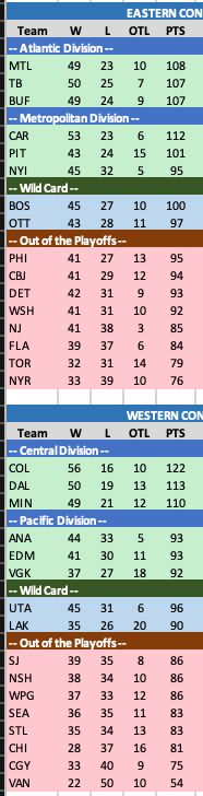 Points NOW: 90 Out of Playoffs