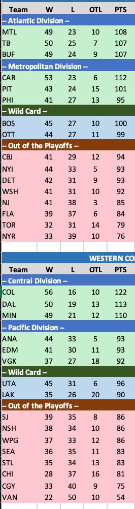 PROJECTED STANDINGS UPDATED 3:41 AFTER